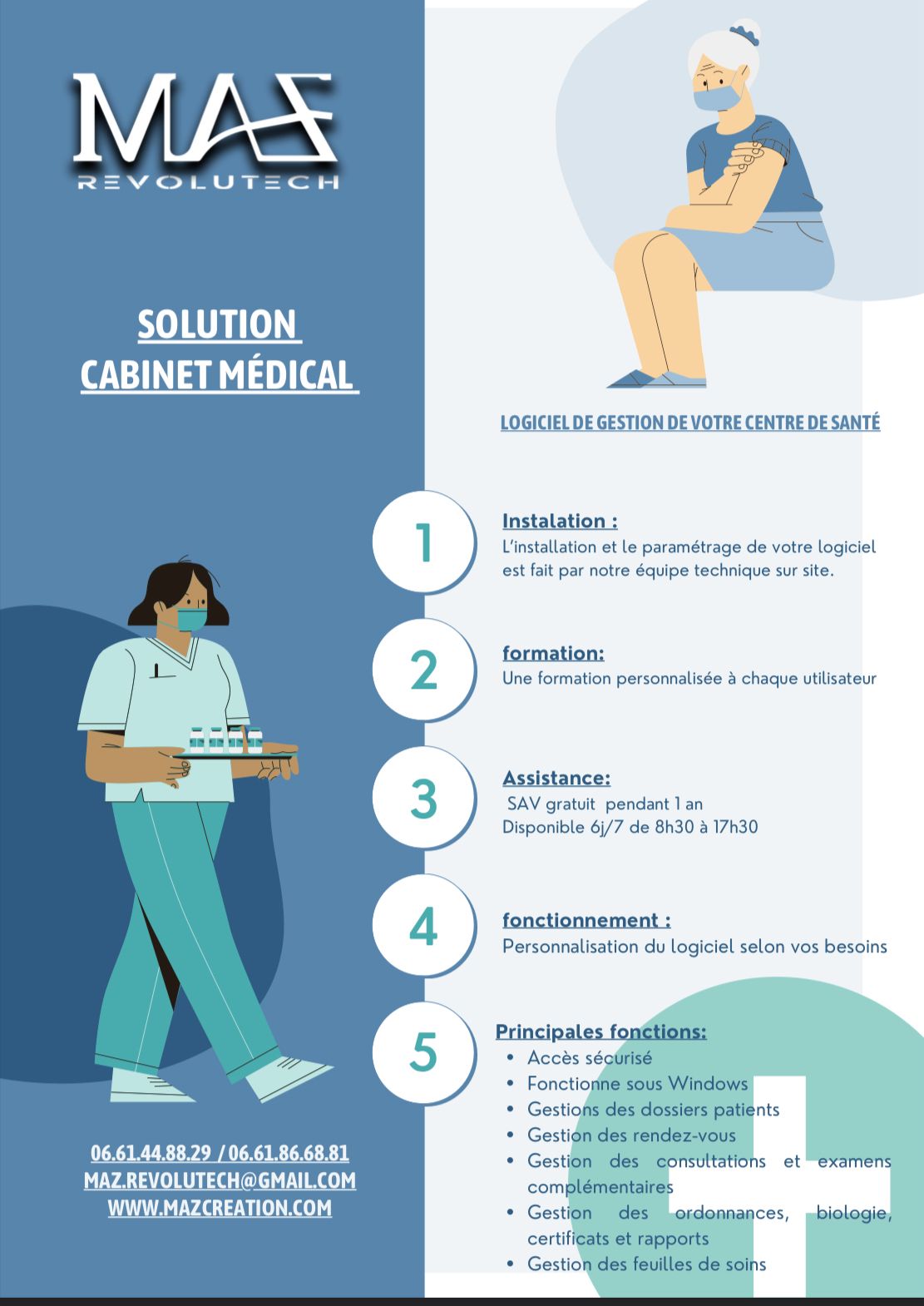 Création et suivi des dossiers patients - Accès rapide à l’historique médical - Ajout de documents, ordonnances, certificats, bilans, etc.